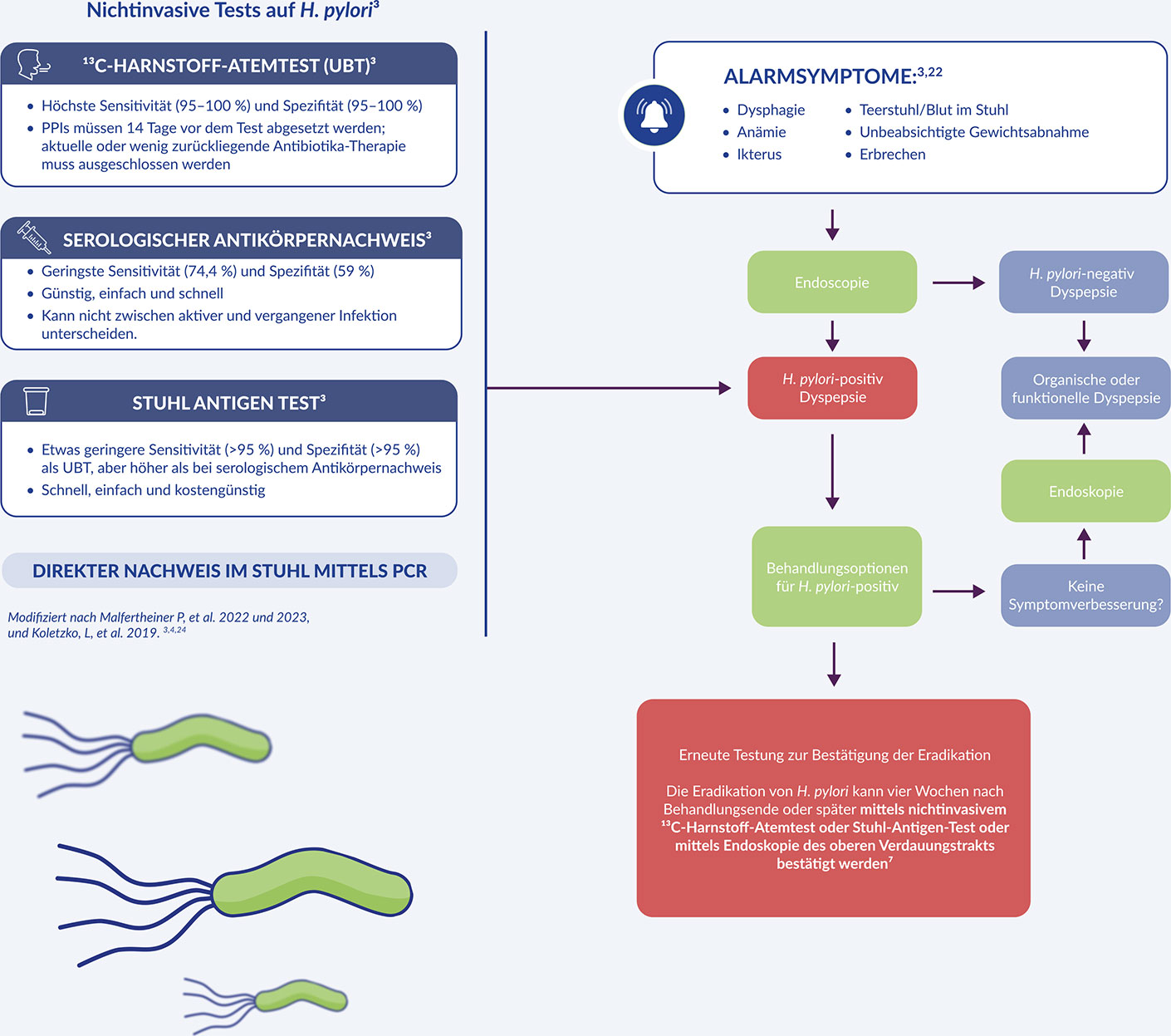 Der Helicobacter pylori (H. pylori) wurde 1982 von Warren und Marshall entdeckt5,6 und 1994 von der Weltgesundheitsorganisation (WHO) als Karzinogen eingestuft4